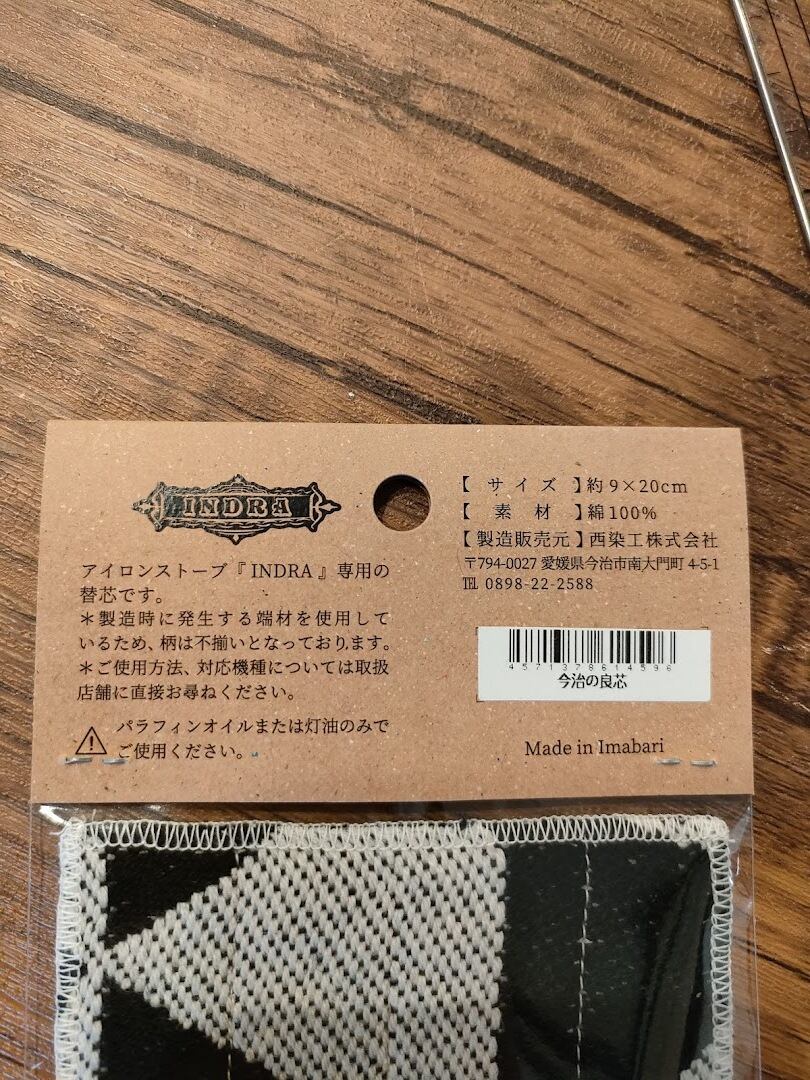 INDRA アイロンストーブ専用芯 「今治の良芯」 替え芯90㎜